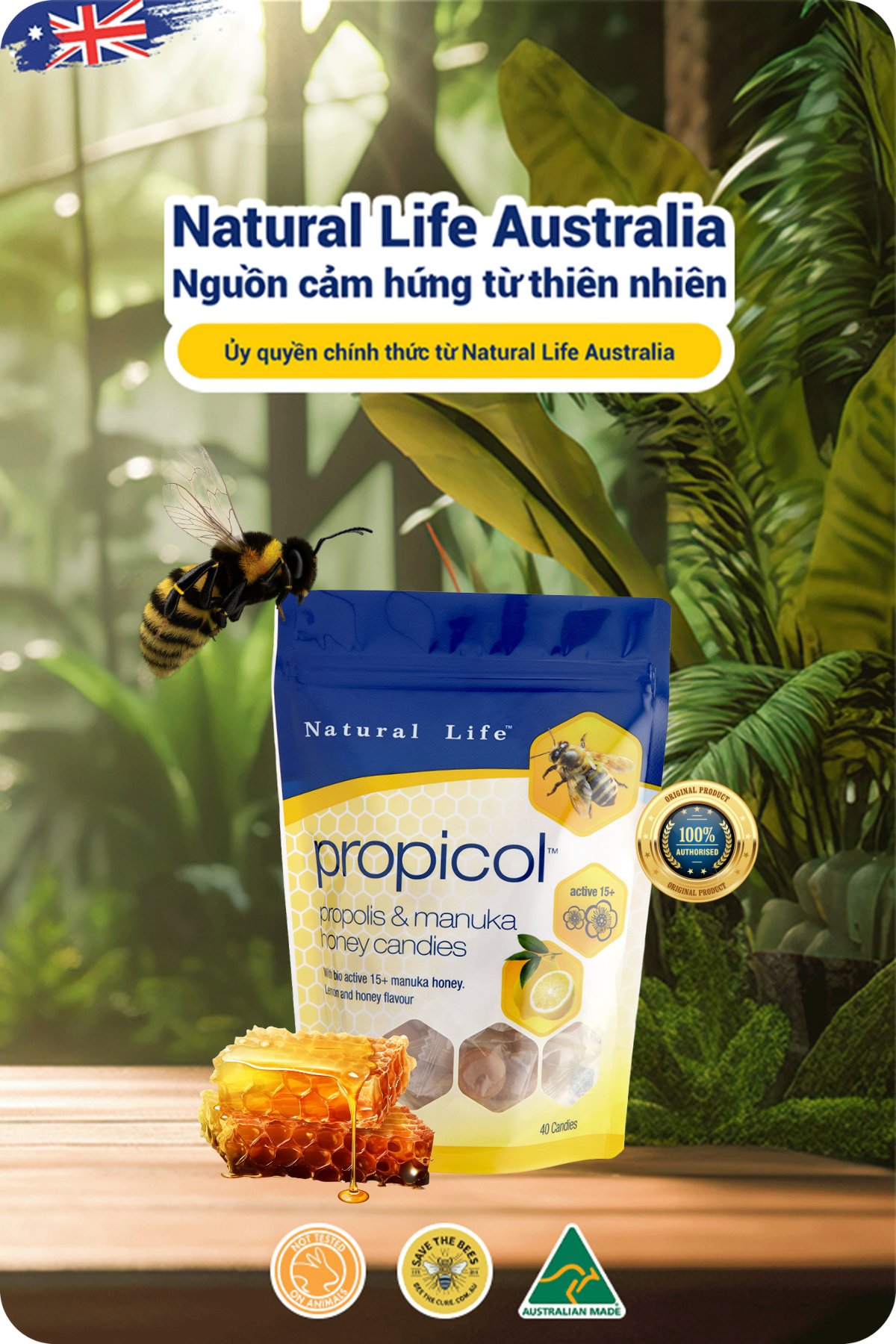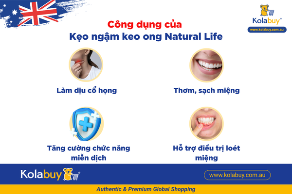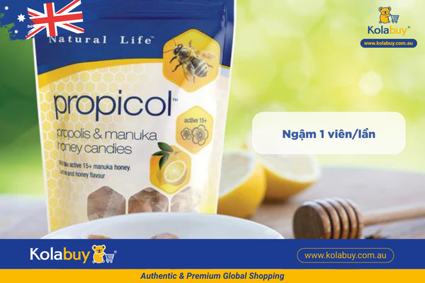 Kẹo ngậm keo ong Natural Life Úc vị chanh mật ong Lemon & Honey 40 viên