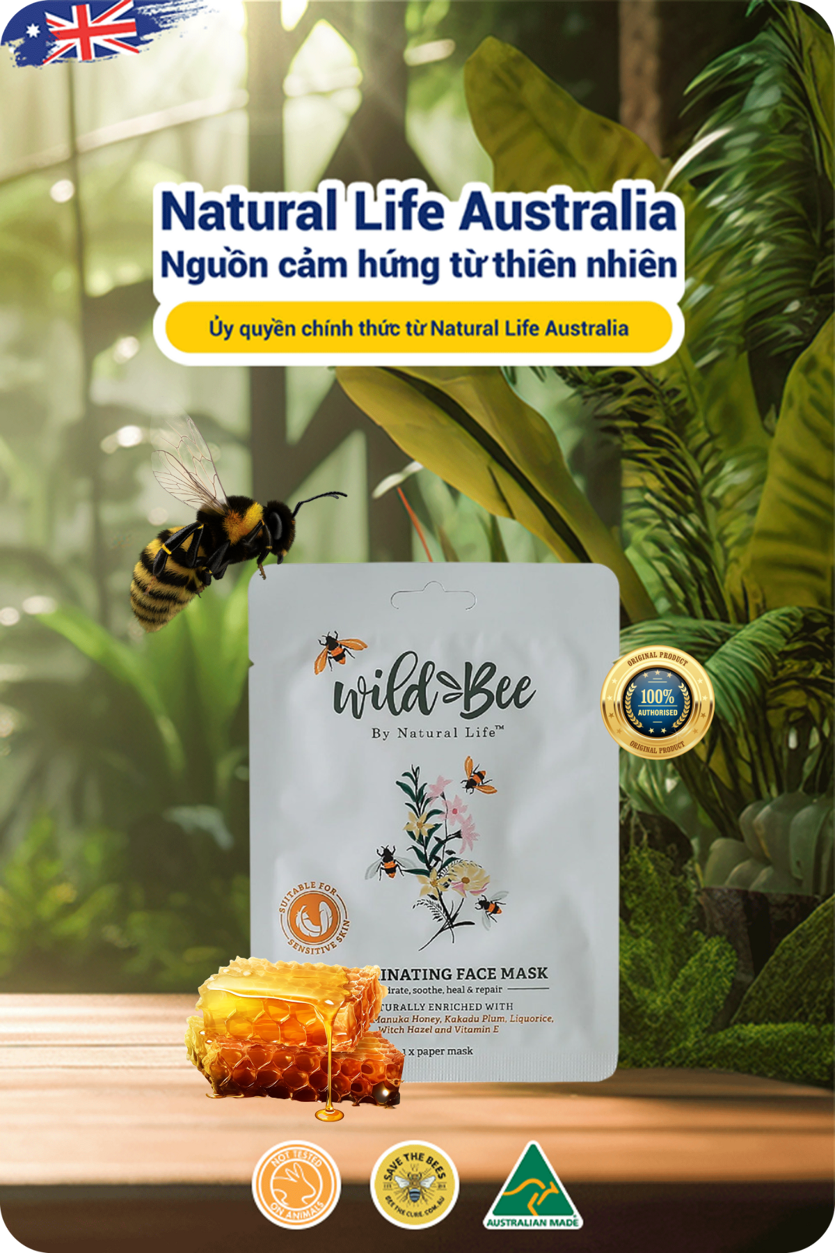 Tận dụng các nguyên liệu chăm sóc da của thiên nhiên như Mật ong Manuka, Lô hội, Sữa ong chúa, Natural Life đã cho ra đời Mặt nạ dưỡng da Wild Bee thân thiện, lành tính và rất dễ sử dụng.