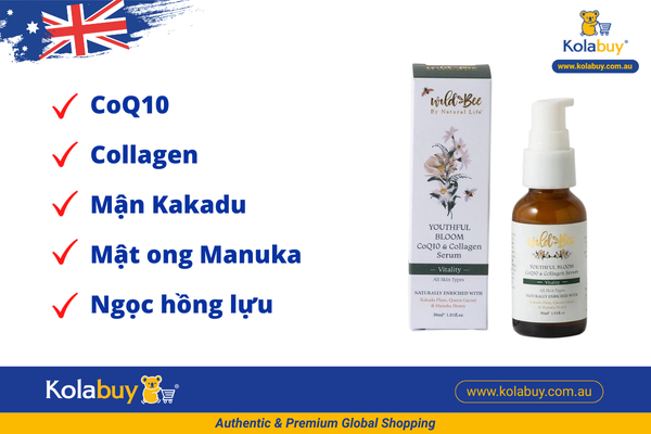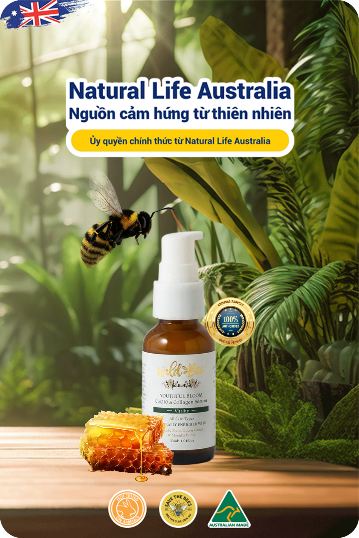 - Serum chống lão hoá là một trong những sản phẩm bán chạy nhất của Wild Bee. Thành phần CoQ10 và collagen trong sêu giúp phục hồi cấu trúc tự nhiên và độ sáng bóng của làn da trẻ, trong khi các chất hữu cơ mạnh mẽ có trong Kakadu Plum, Queen Garnet và Manuka Honey bảo vệ, củng cố và làm đều màu da.