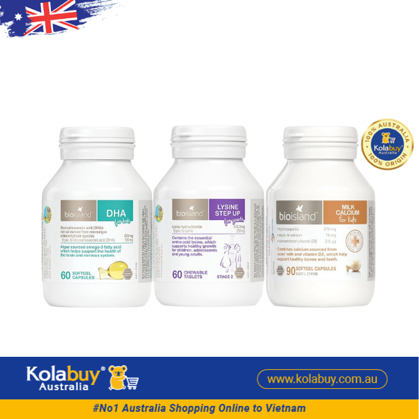 [Special Set] Phát triển toàn diện cho bé của Úc DHA Bio Island & Canxi Bio Island & Lysine viên Bio Island (Discount đến 30%)