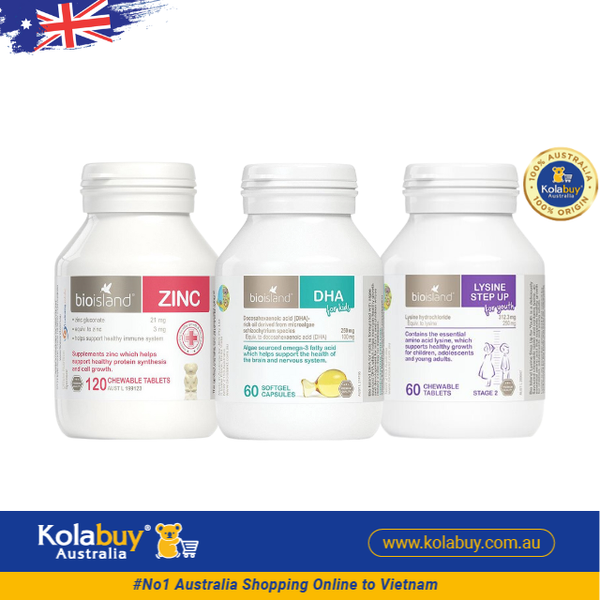 [Special Set] Phát triển toàn diện cho bé của Úc Kẽm ZinC Bio Island & DHA Bio Island & Lysine viên Bio Island (Discount đến 30%)