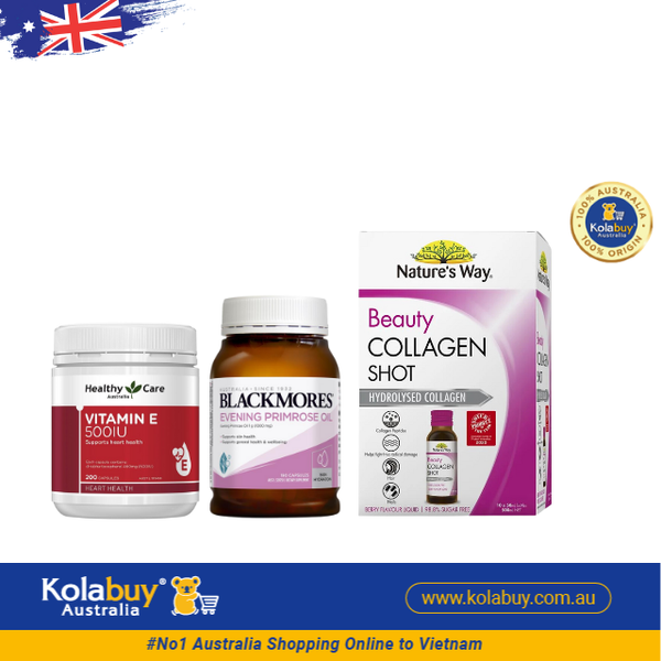[Special Set] Chăm sóc sức khỏe phái đẹp Tinh dầu Hoa anh thảo Blackmores & Vitamin E Healthy Care & Collagen Shot 10 x 50ml Nature's Way (Discount đến 30%)