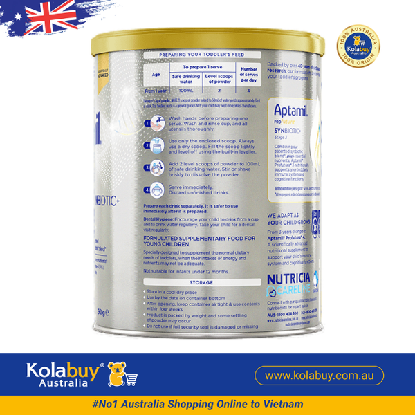 Kolabuy Australia là hệ thống website bán lẻ hàng Úc uy tín số 1 trên thị trường mong muốn mang đến cho quý khách hàng trải nghiệm shopping sữa Aptamil Pro số 3 tuyệt vời, đảm bảo chuẩn xuất xứ, nguồn gốc cùng dịch vụ khách hàng tận tâm chỉ trong 1 cú Click.