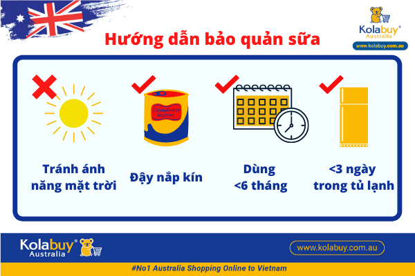 Cách bảo quản sữa A2 của Úc như sau: