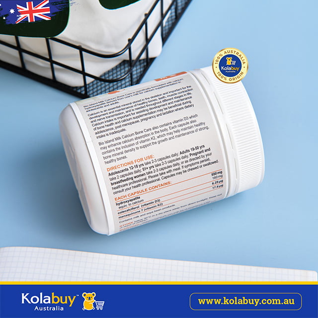 Bio Island Milk Calcium Bone Care phát huy ưu điểm vượt trội trong việc bổ sung canxi, vitamin D3 và vitamin k2. Vitamin D3 hỗ trợ quá trình hấp thụ canxi.
