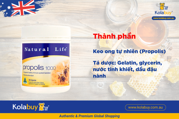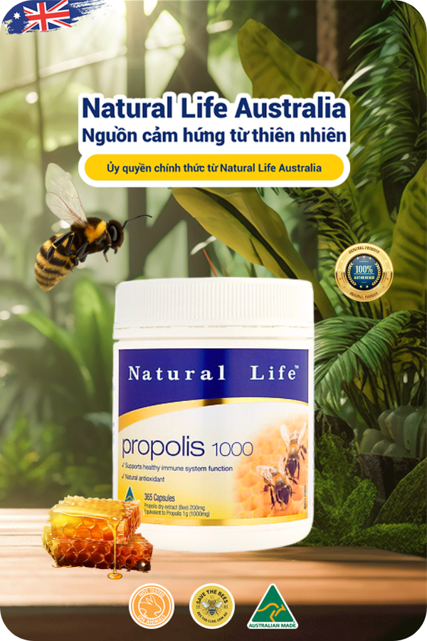 Viên uống keo ong Natural Life Úc Propolis Capsules 1000mg 365 viên